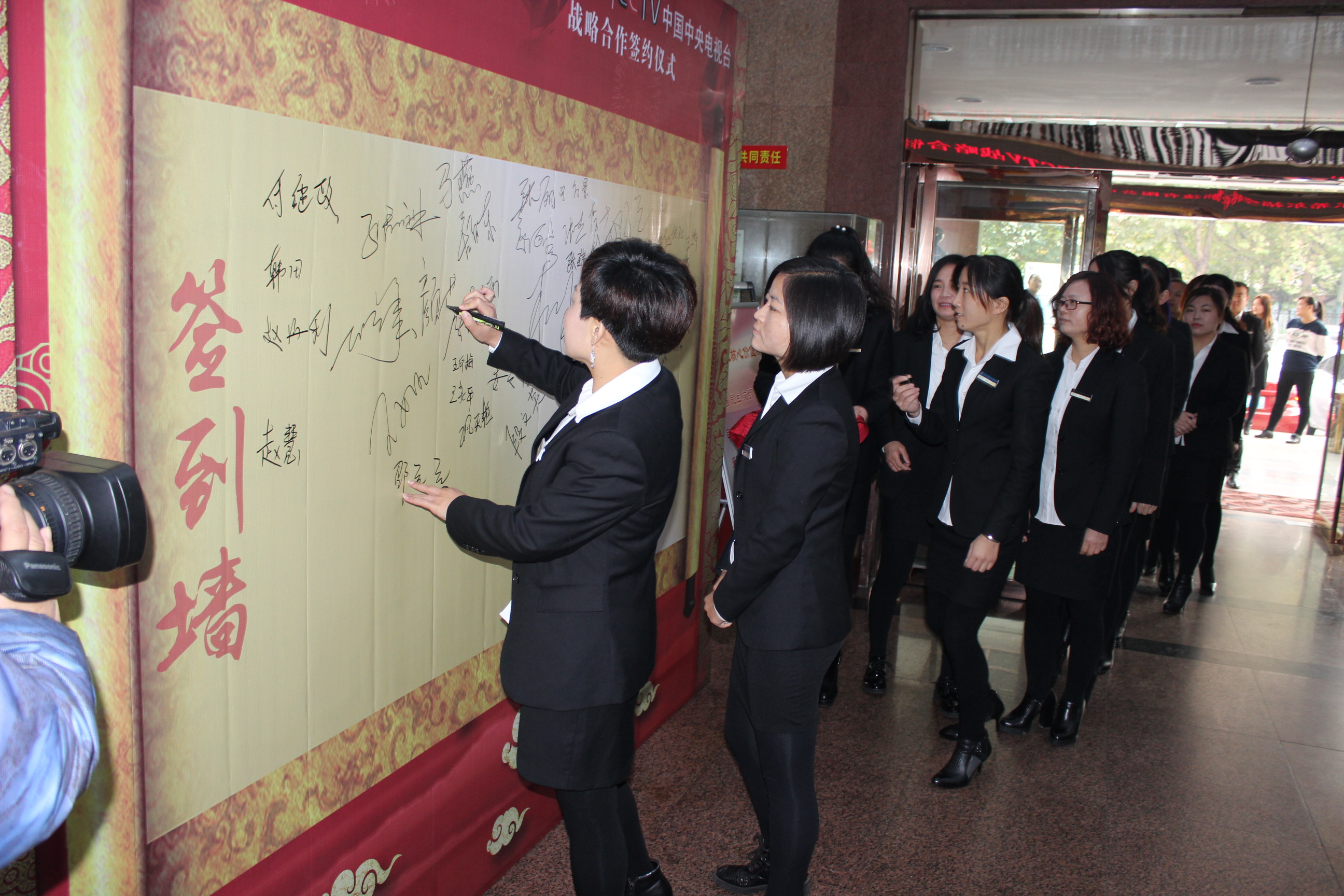 全體員工在簽到墻留下自己的名字
